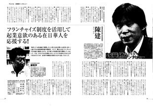 フランチャイズ制度を活用して起業意欲のある在日華人を応援する!!「来日して10年前後で起業したいと考える在日華人は非常に多い」と話すのは創業新幹線の陳建氏。そこで、陳氏は各フランチャイズの本部と提携しながら、在日華人の起業支援を展開しているという。では、どのような在日華人なら、ビジネスを成功させることができるのだろうか。自身の体験談を踏まえながら語ってもらった。 |